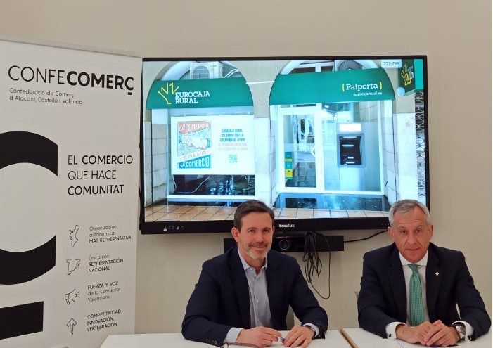 Confecomerç y Eurocaja Rural firman un acuerdo de colaboración que incluye una aportación económica y la difusión del sello solidario en todas las oficinas de Eurocaja Rural en la Comunidad Valenciana, reforzando su compromiso con las pymes y autónomos afectados.
